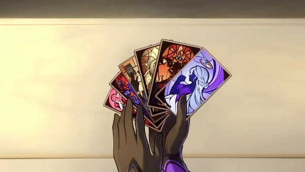 special items. a stack of tarot cards infused with her aether, themed around her upbringing and occupation as a memokeepeer.
