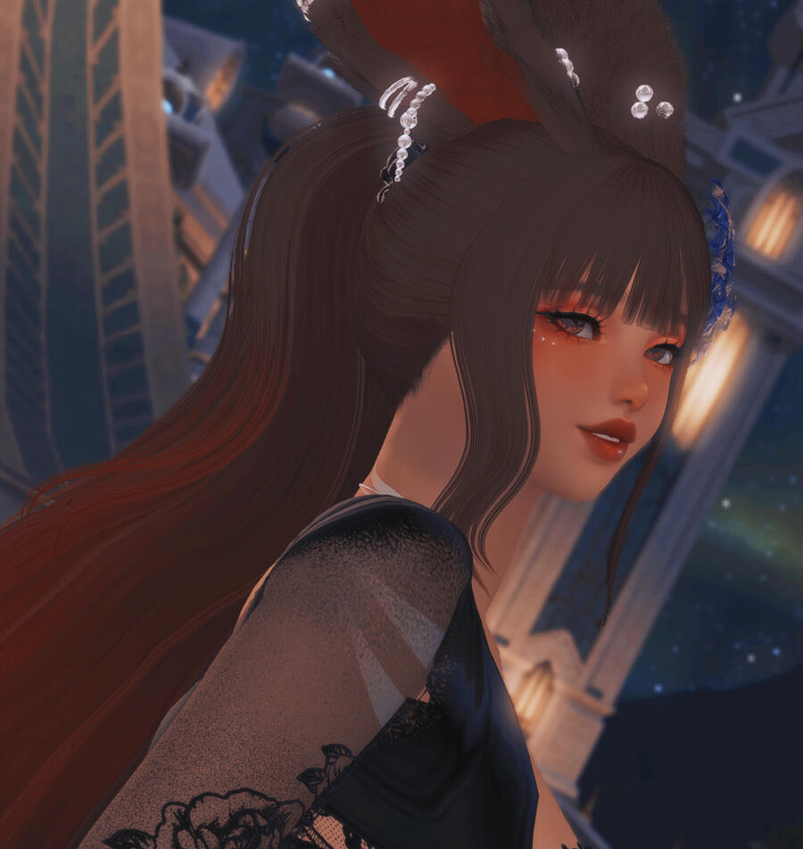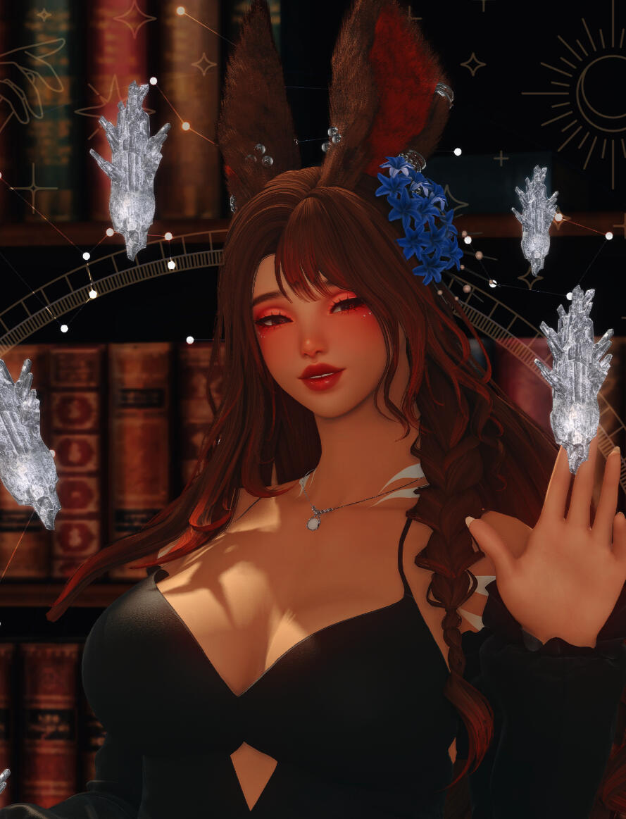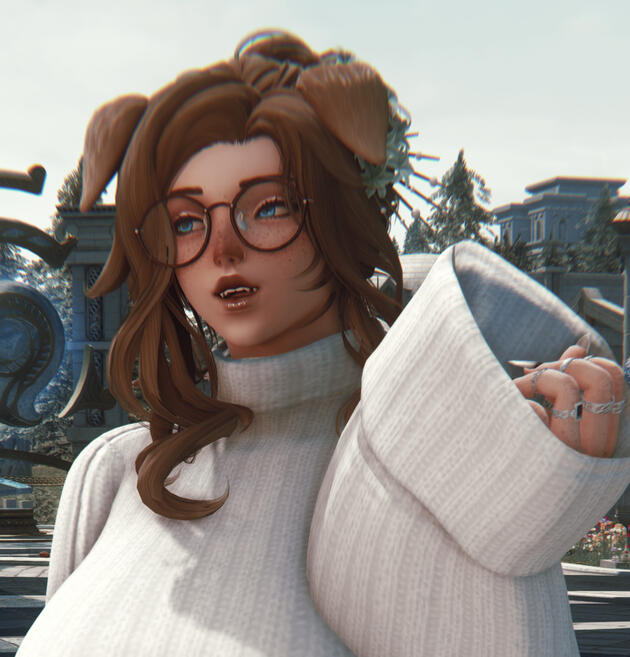 you can usually find me in game running around and doing silly stuff with my pals! i also work at the femme fatale during their openings as a healer for any injured fighters. if you see me gposing somewhere, don't be shy and say hi!